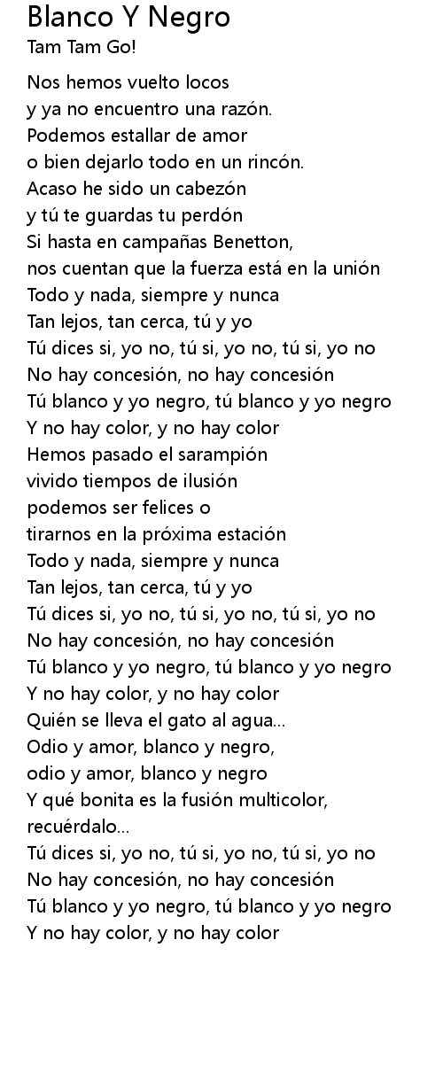 | Tú blanco y yo negro, tú blanco y yo negro | |