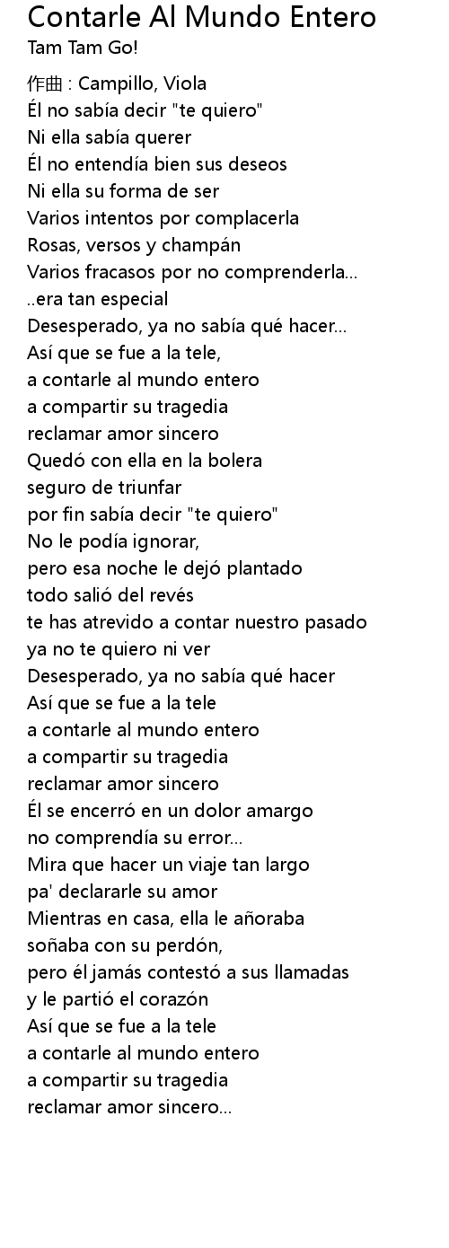 | Song | Contarle Al Mundo Entero |