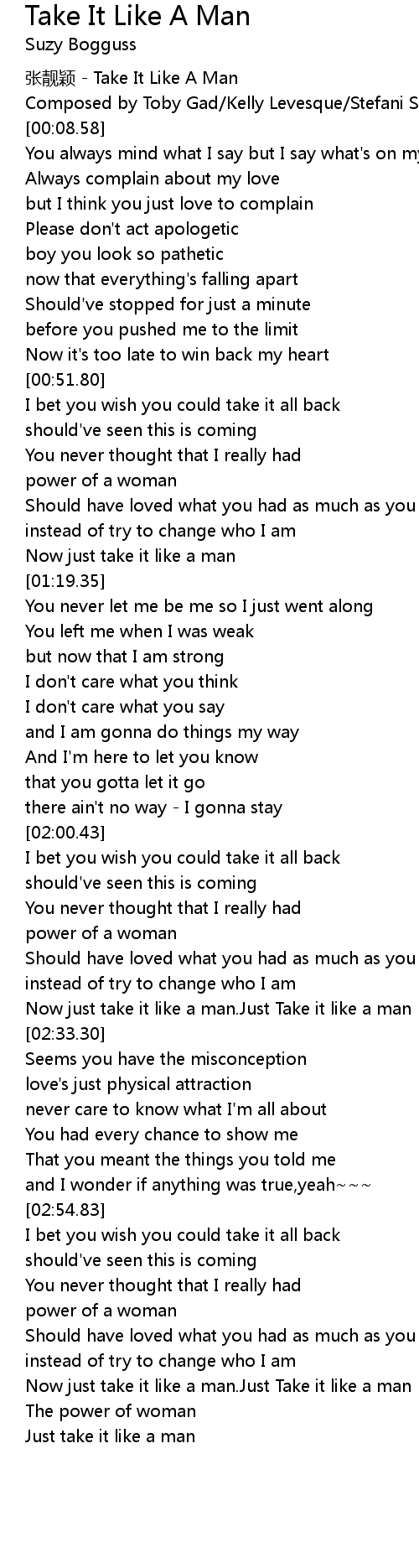 | [03:19.51] | Now just take it like a man. Just Take it like a man |