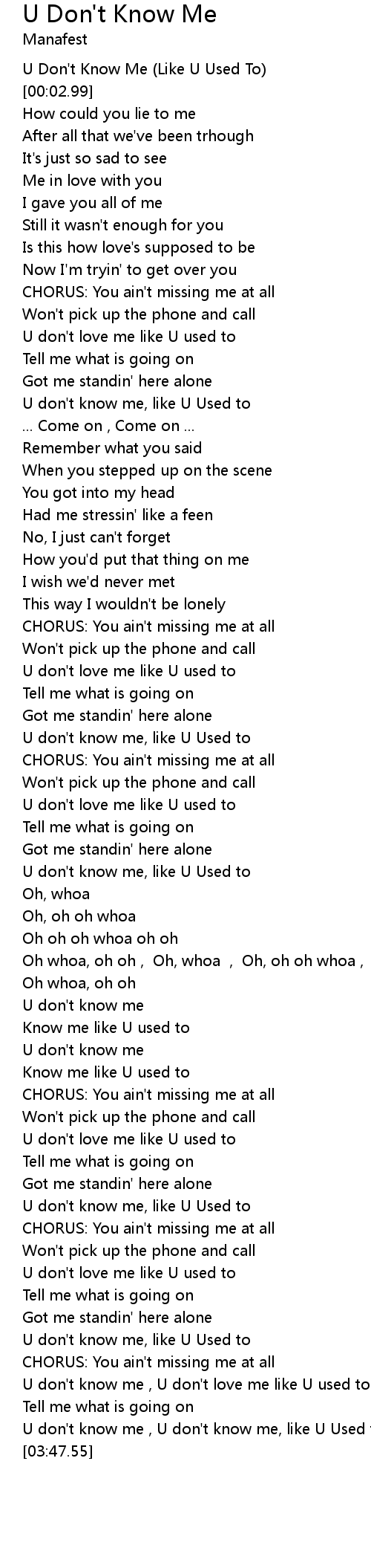 | [03:22.47] | U don't know me, like U Used to |