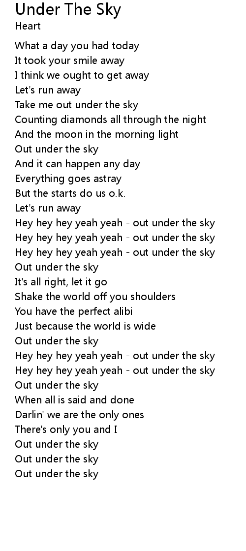 | Hey hey hey yeah yeah - out under the sky | |