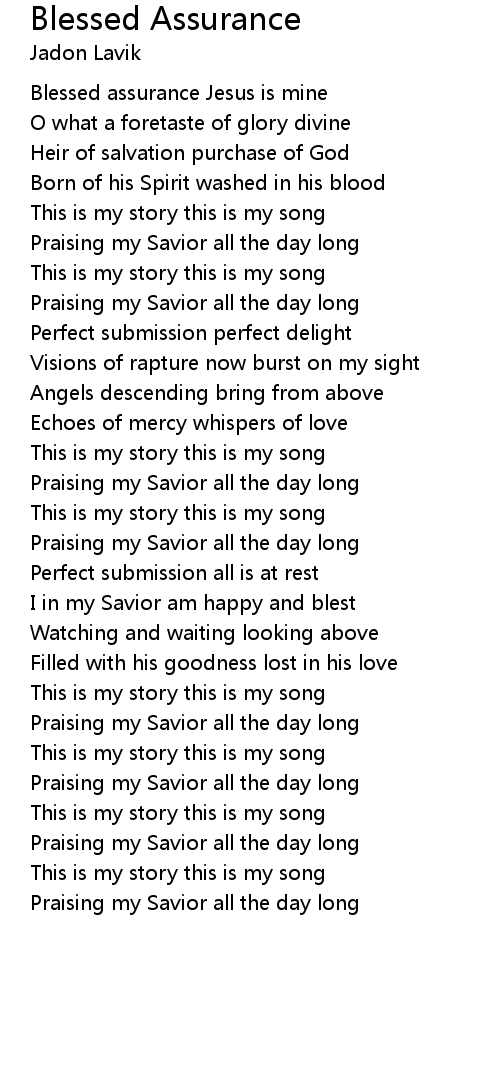 Blessed assurance Jesus is mine |