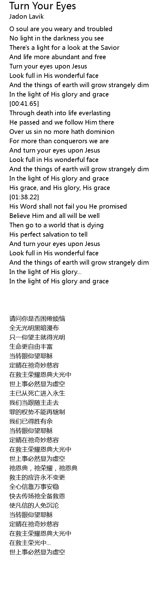And turn your eyes upon Jesus |