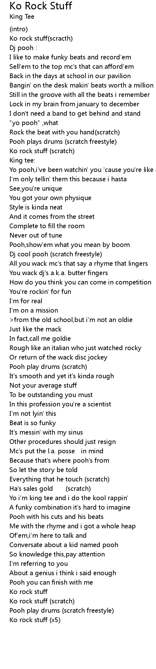 | Yo i'm king tee and i do the kool rappin' | |