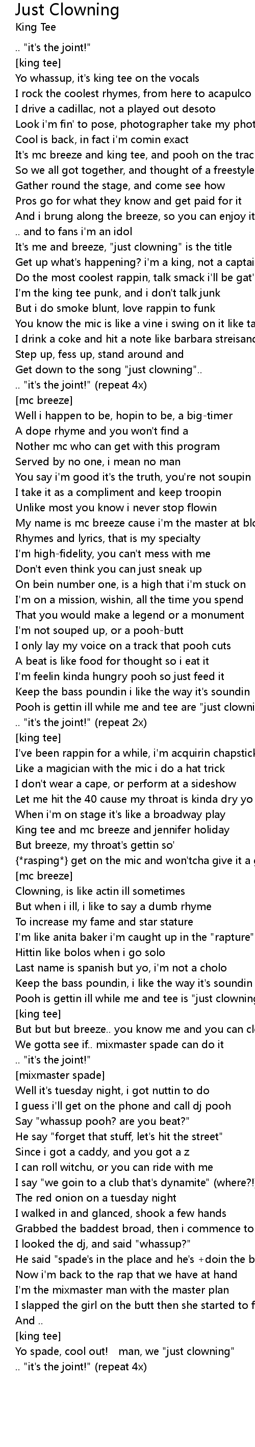 | Yo spade, cool out! man, we "just clowning" | |