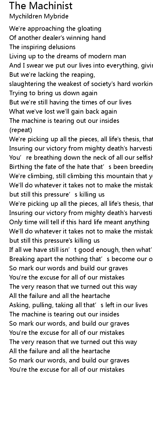 | The machine is tearing out our insides | |