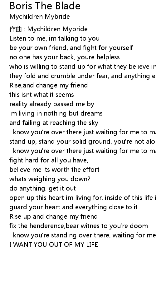 | Song | Boris The Blade |