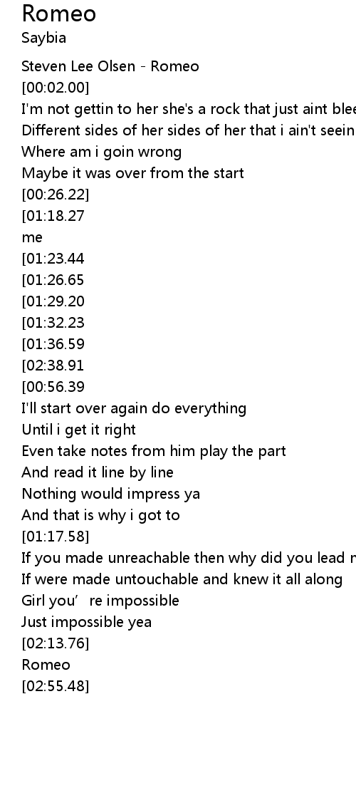 | [00:00.00] | Steven Lee Olsen - Romeo |