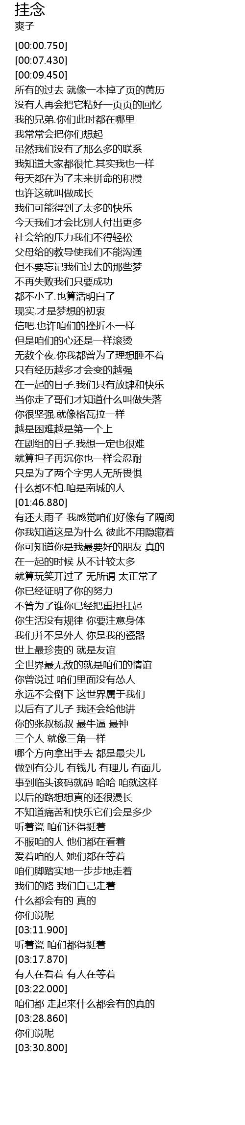 | [00:39.910] | wǒ cháng cháng huì bǎ nǐ men xiǎng qǐ |