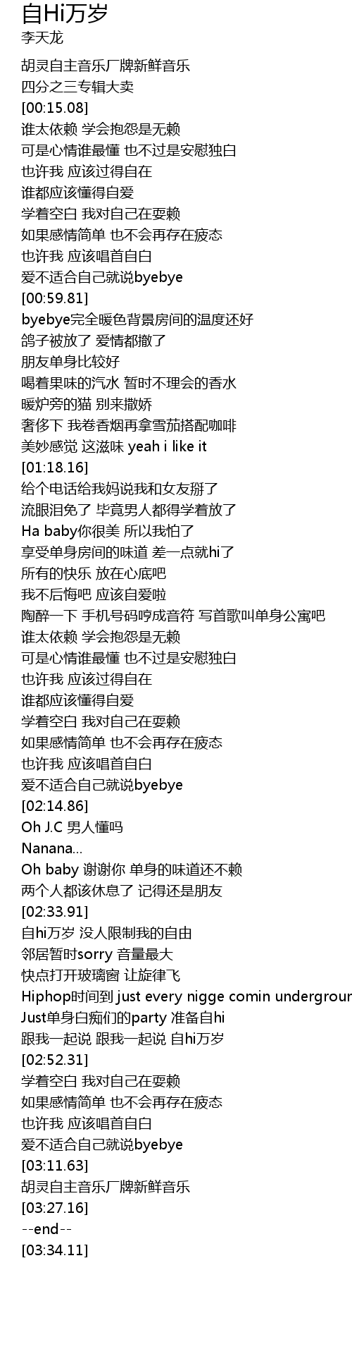 | [02:34.97] | 自hi万岁 没人限制我的自由 |