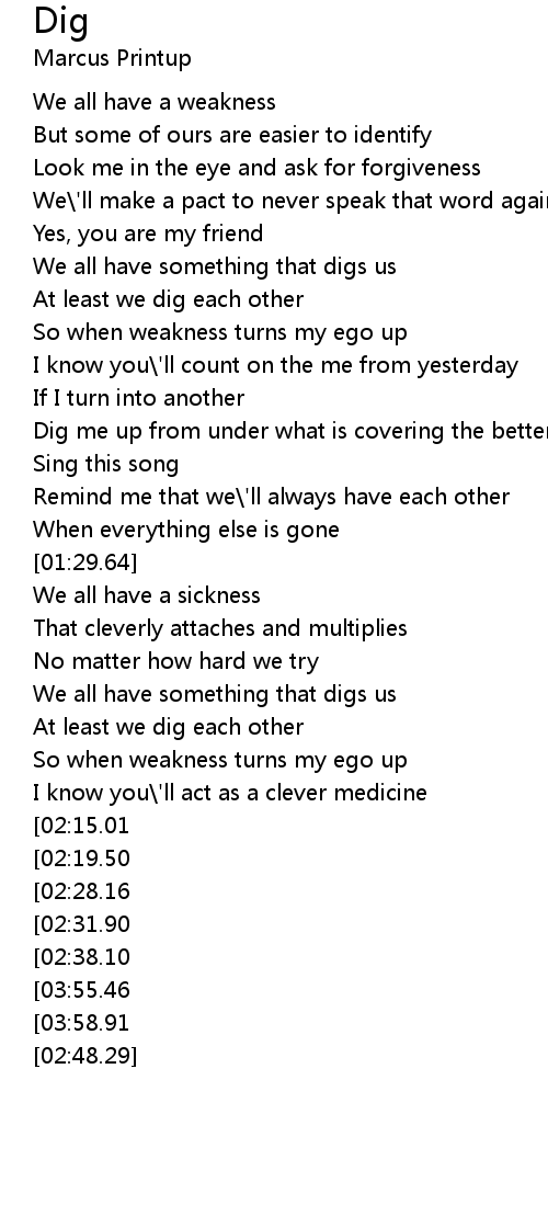 [03:35.63][02:19.50] Dig me up from under what is covering the better part of me