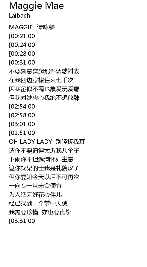 | [03:15.00][03:01.00][01:47.00][01:03.00] | MY MY MY MY MAGGIE shi suo lian nv zi |
