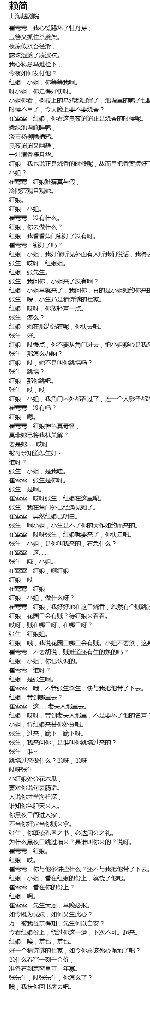 | [03:45.51] | 红娘:哎,她不是叫你跳墙吗? |