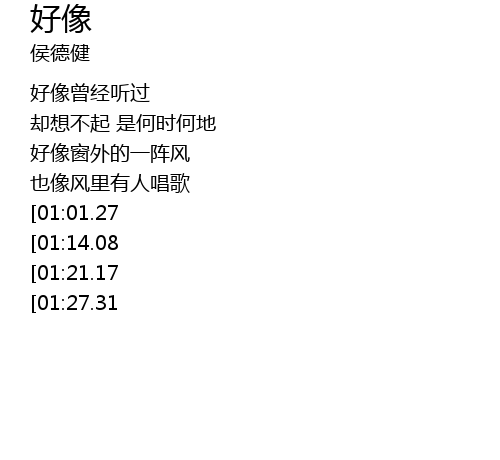 | [03:23.71][01:27.31] | 好像 |
