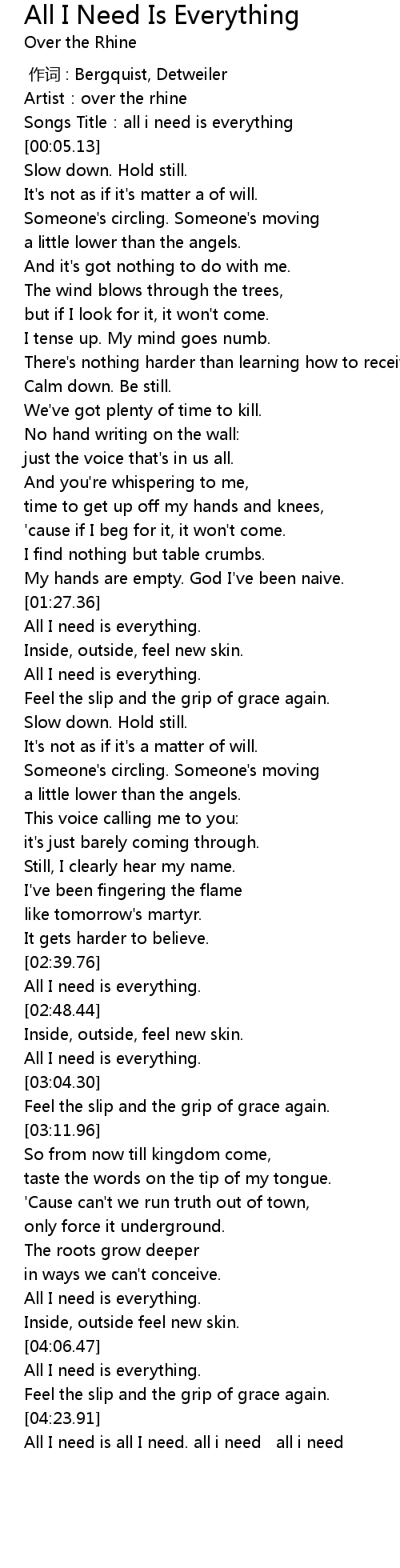| [02:41.27] | All I need is everything. |