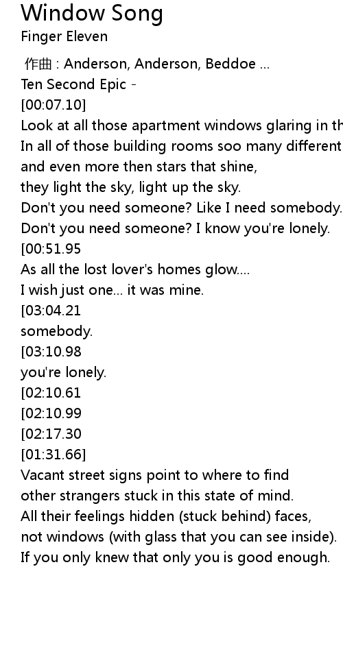 | [00:14.06] | Look at all those apartment windows glaring in the night. |
