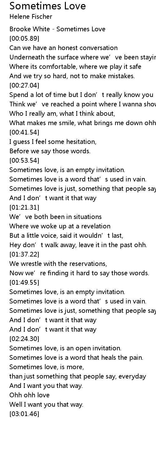 | [02:03.99] | Sometimes love is just, something that people say, everyday |