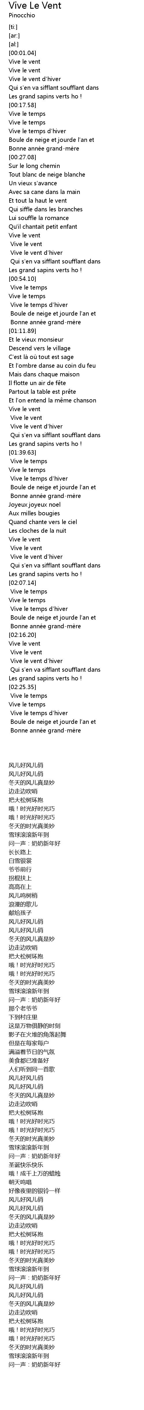 | [00:22.34] | Boule de neige et jourde l'an et |