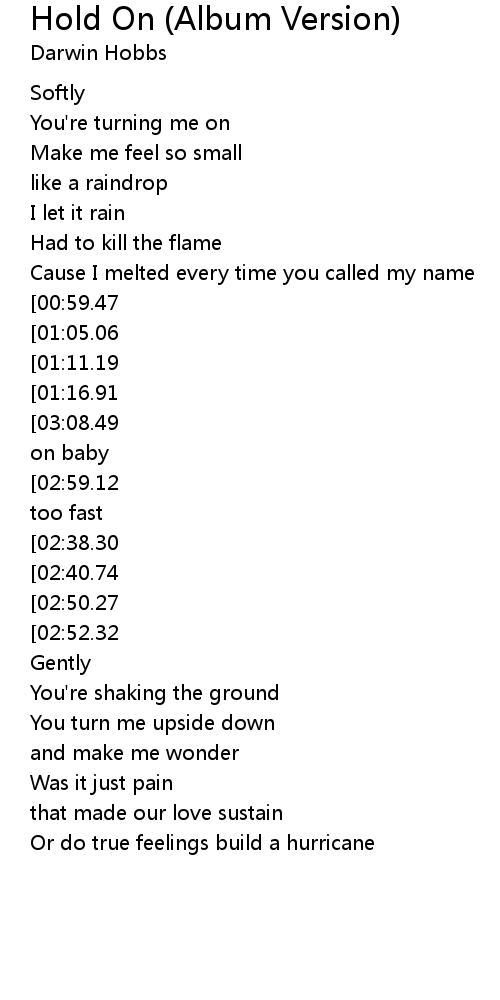 [03:19.84][03:08.49][02:56.68][02:44.95][02:44.90][02:33.46][01:34.79][01:23.07] Hold on baby