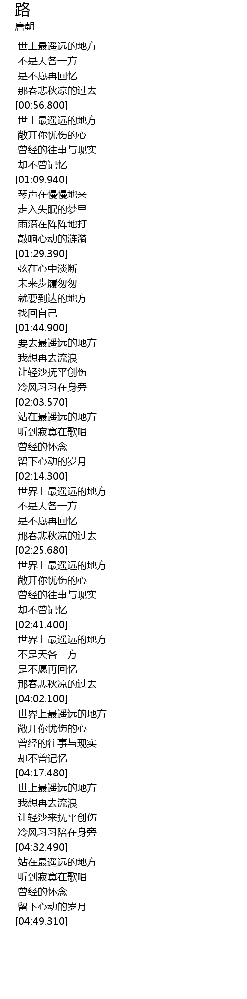 | [04:02.800] | 世界上最遥远的地方 |