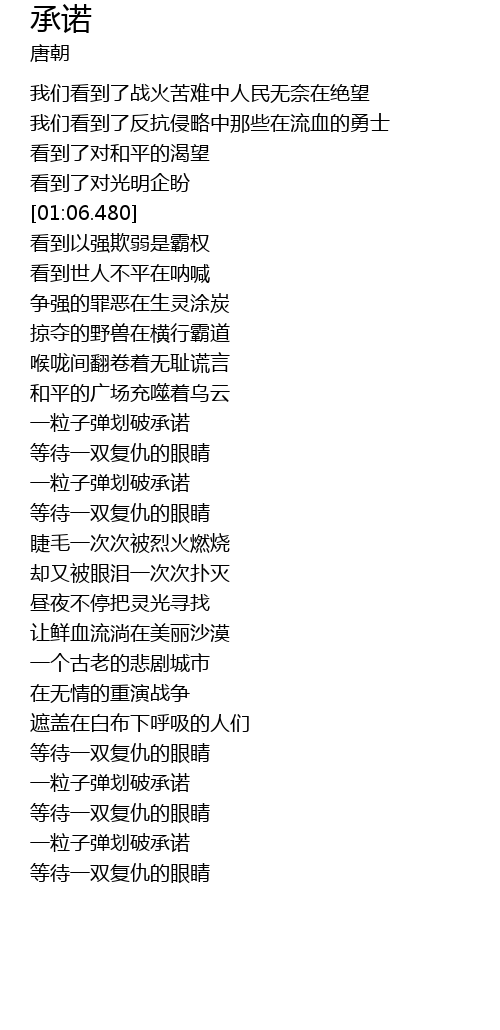 | [00:19.350] | 我们看到了战火苦难中人民无奈在绝望 |
