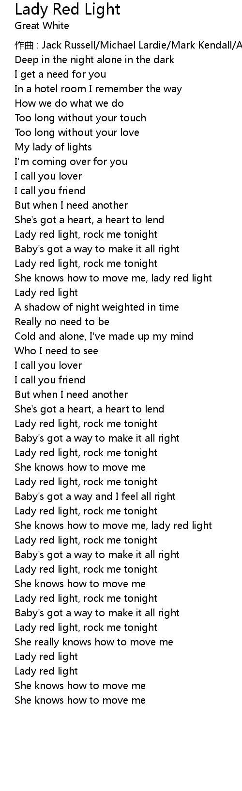 | Lady red light, rock me tonight | |