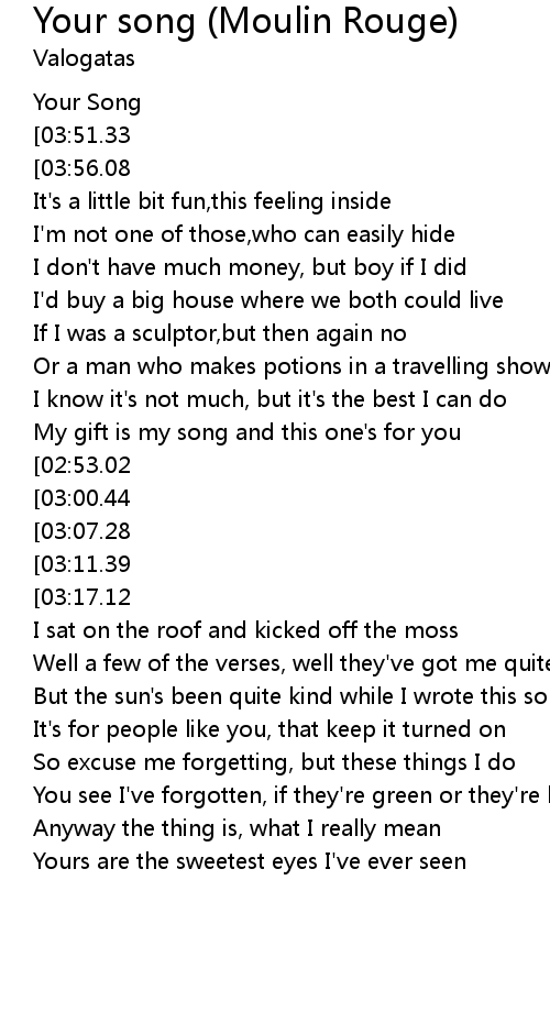 | Song | Your song (Moulin Rouge) |