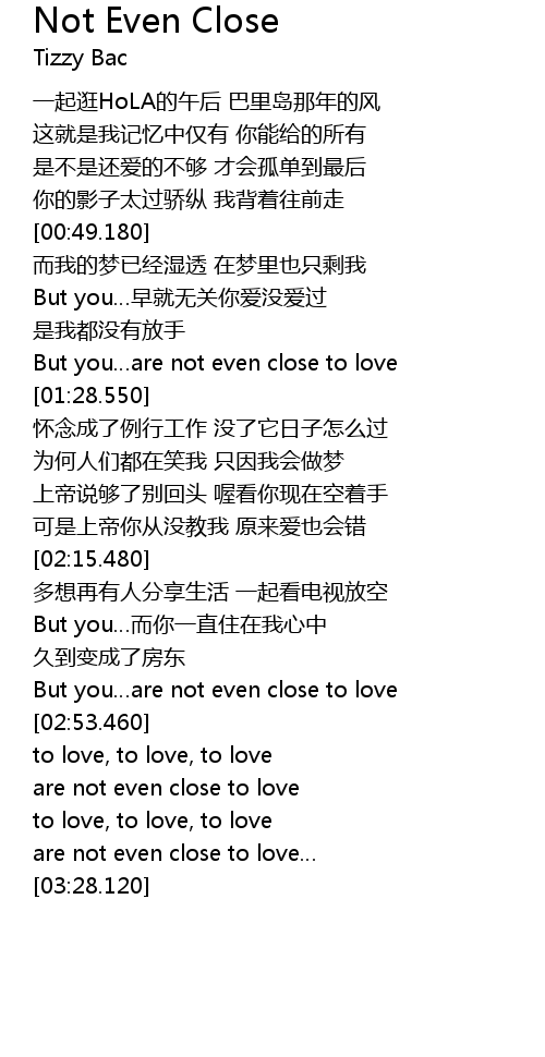 | [03:06.090] | are not even close to love |