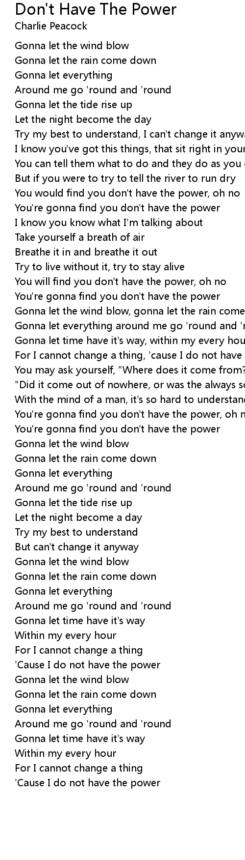 'Cause I do not have the power |