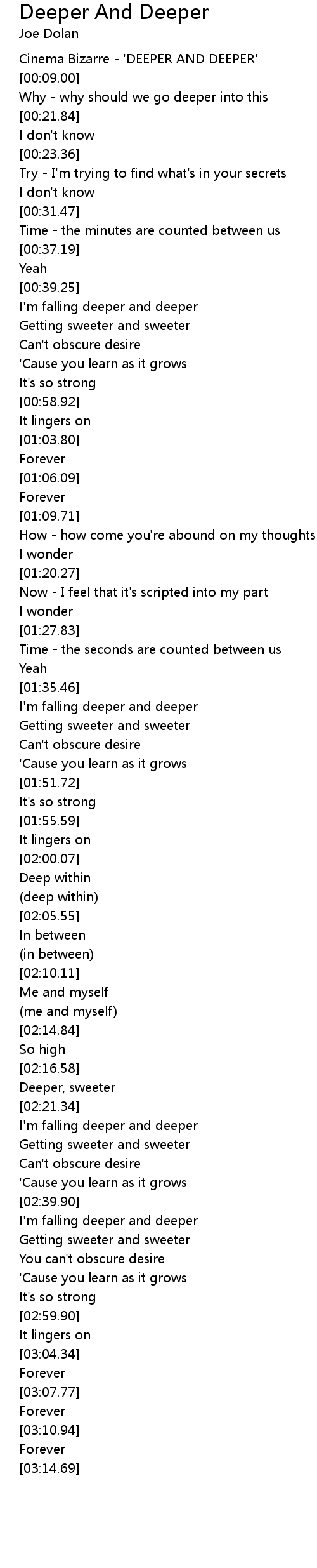 I'm falling deeper and deeper |