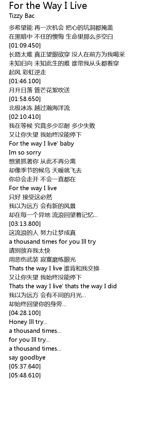| [03:54.070] | Thats the way I live 谁肯和我交换 |