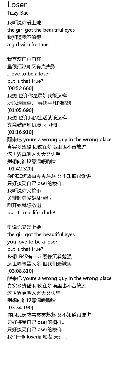| [01:49.870] | zhi hao jie shou zi ji loser de mu yang... |