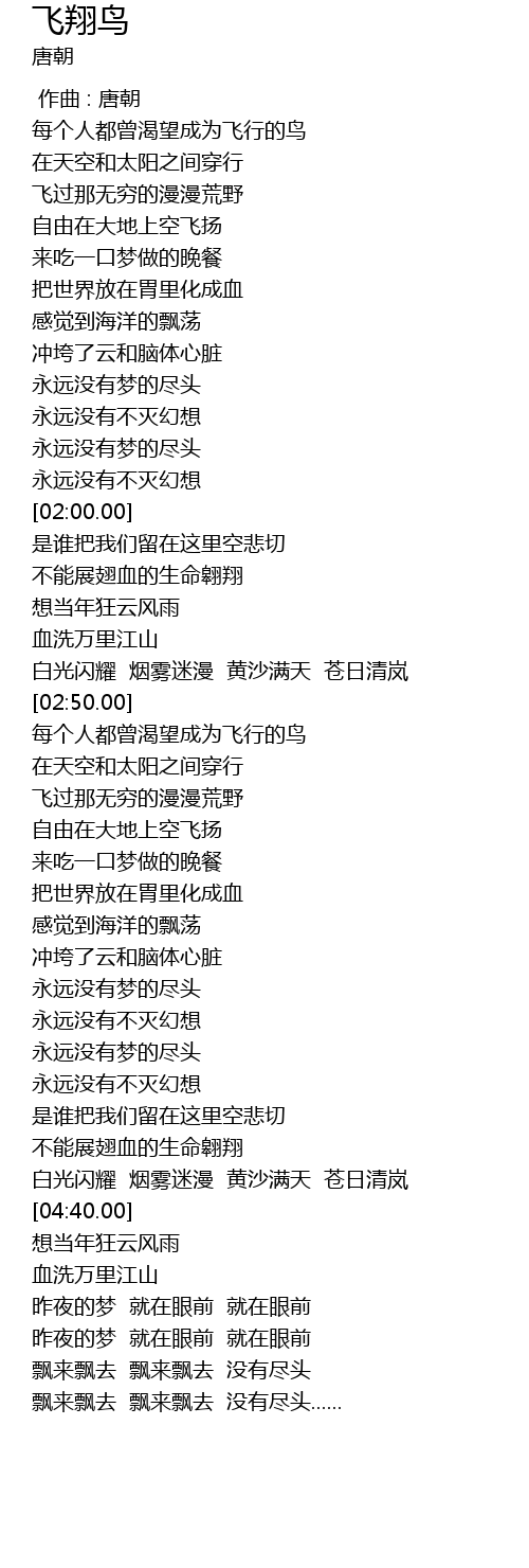 | [04:00.00] | 不能展翅血的生命翱翔 |