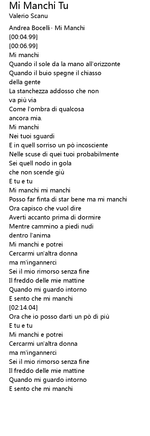 | [01:15.58] | Mi manchi mi manchi |