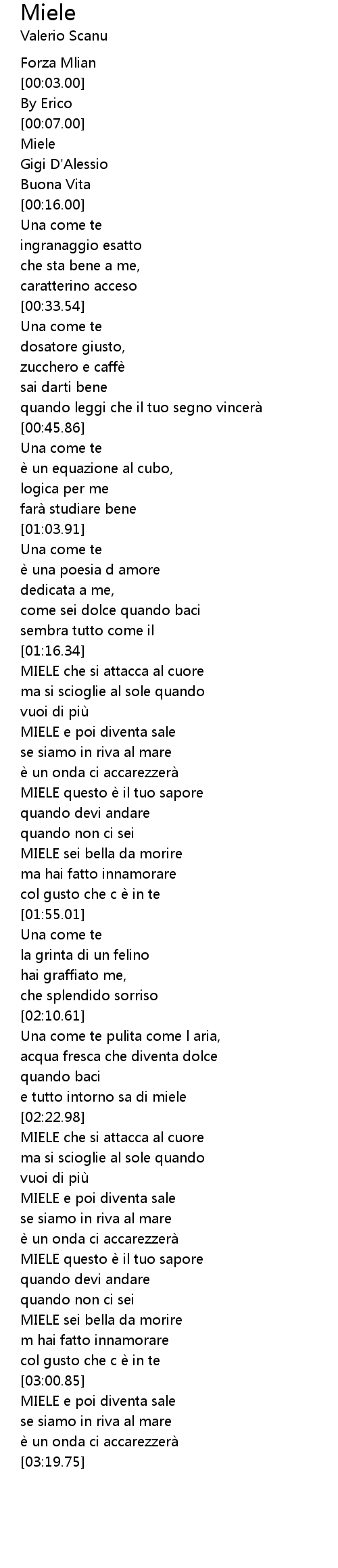 | [03:08.16] | MIELE e poi diventa sale |