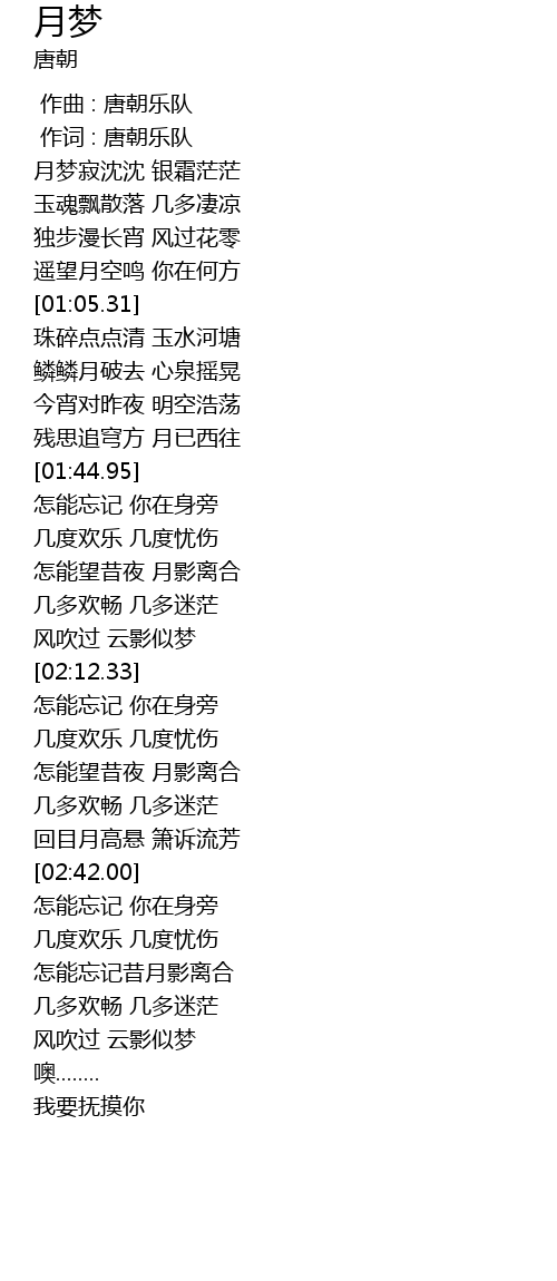 | [00:01.00] | 作词 : 唐朝乐队 |