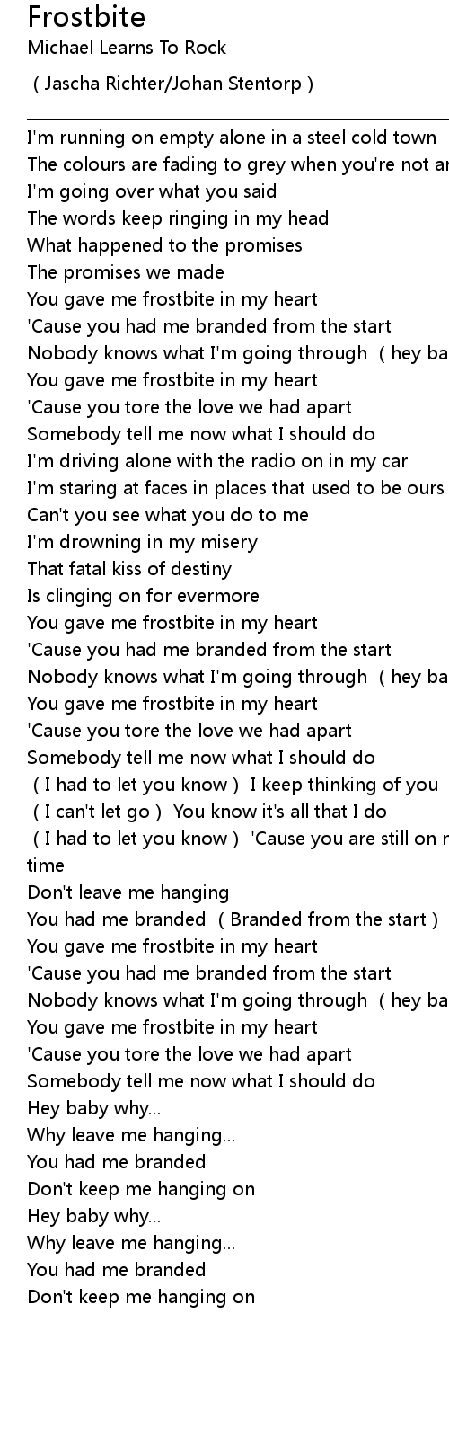 | [01:03.18] | You gave me frostbite in my heart |