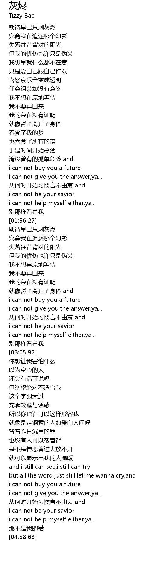 | [00:32.15] | 期待早已只剩灰烬 |