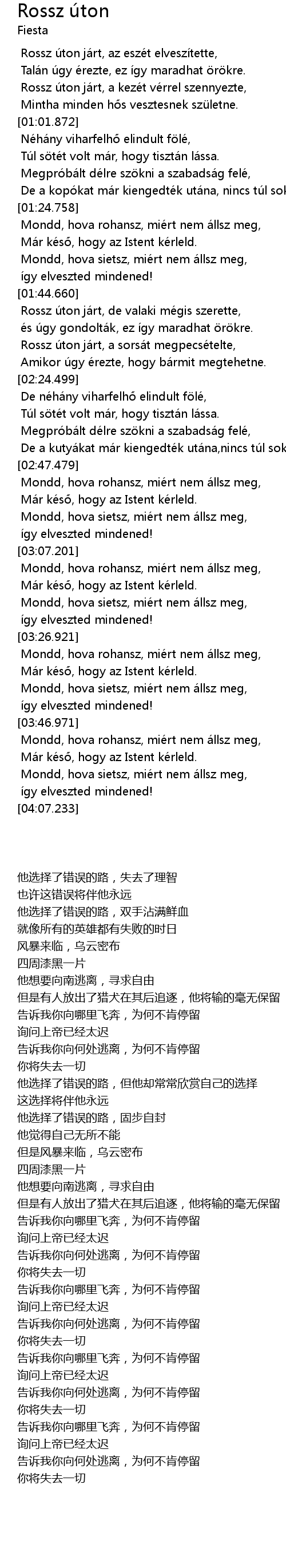 | [02:05.160] | Rossz ú ton já rt, de valaki mé gis szerette, |