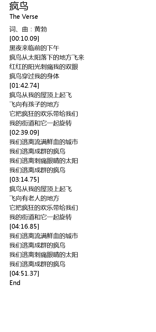 | [04:43.59] | 我们逃离成群的疯鸟 |