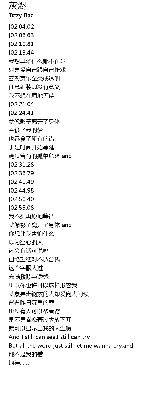 | [00:28.50][02:04.02] | 期待早已只剩灰烬 |