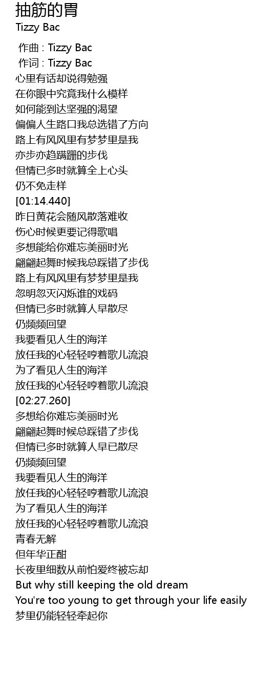 | [00:01.00] | zuò cí : Tizzy Bac |