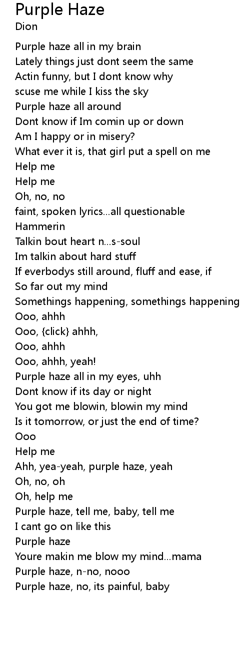 | [02:29.26] | Purple haze, tell me, baby, tell me |