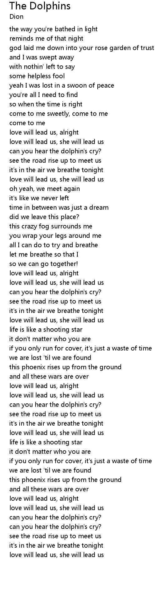 | [01:40.00] | can you hear the dolphin's cry? |