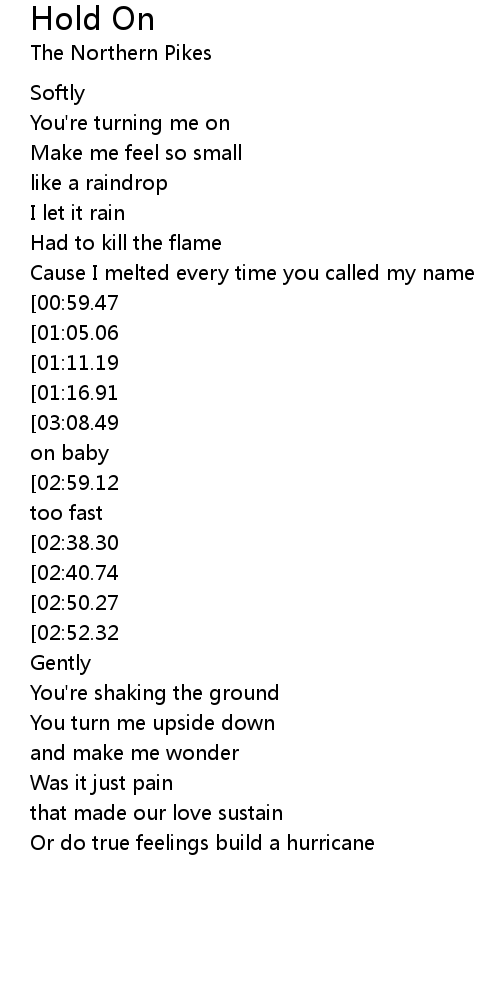 [03:19.84][03:08.49][02:56.68][02:44.95][02:44.90][02:33.46][01:34.79][01:23.07] Hold on baby