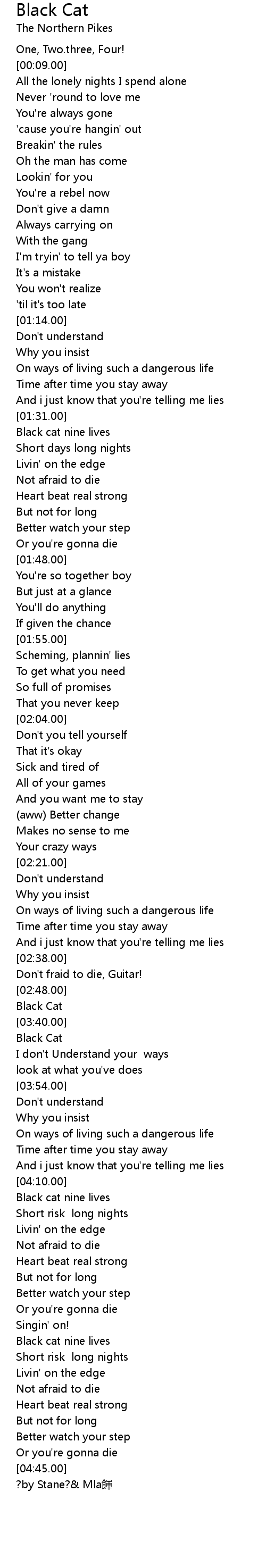 | [04:11.00] | Black cat nine lives |