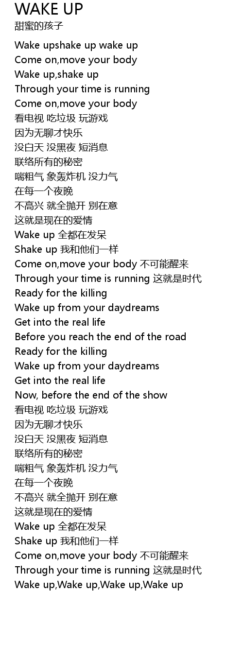 | [03:21.82] | Wake up,Wake up,Wake up,Wake up |