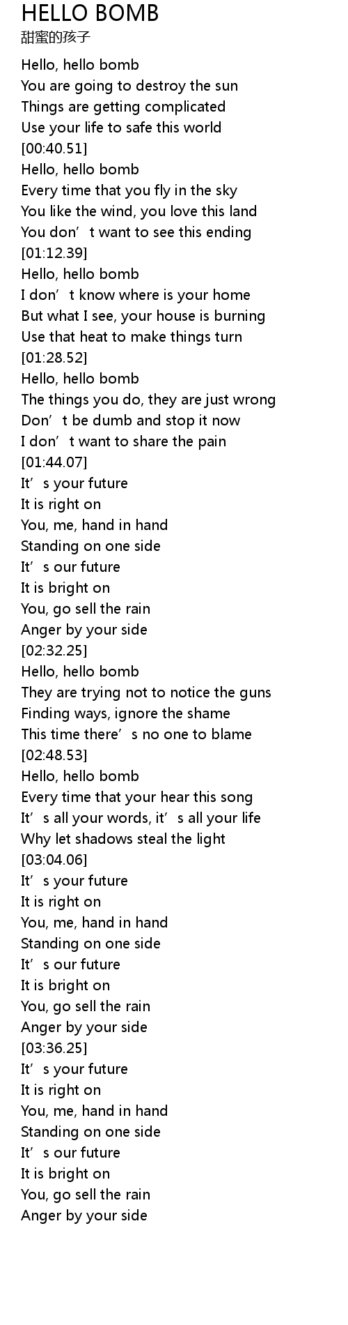 | [00:41.01] | Hello, hello bomb |