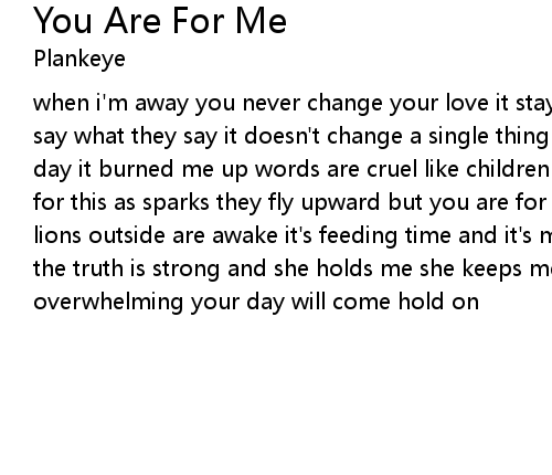 when i'm away you never change your love it stays when mine it fades men will say what they say it doesn't change a single thing for you are for me another day it burned me up words are cruel like children the strangest thing i was born for this as sparks they fly upward but you are for me i got the shakes for the lions outside are awake it's feeding time and it's my life that is the storyline the truth is strong and she holds me she keeps me moving on when it gets overwhelming your day will come hold on |