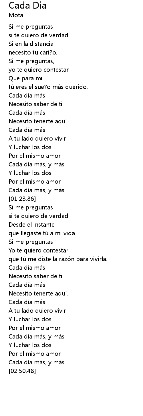 | [01:59.90] | Cada dí a má s |